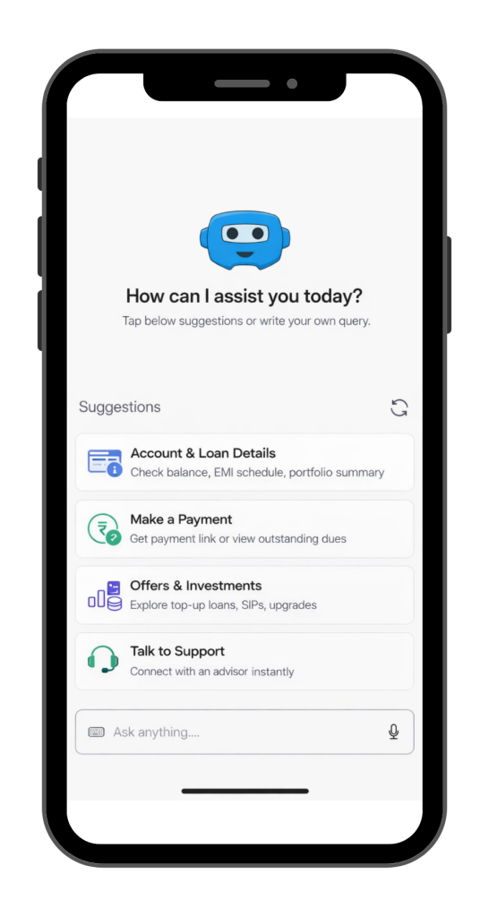 Secure, high-engagement borrower and investor communication on WhatsApp, enabling reminders, servicing, campaigns, and payment journeys at scale.