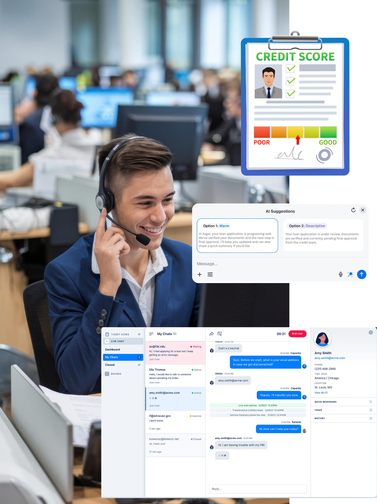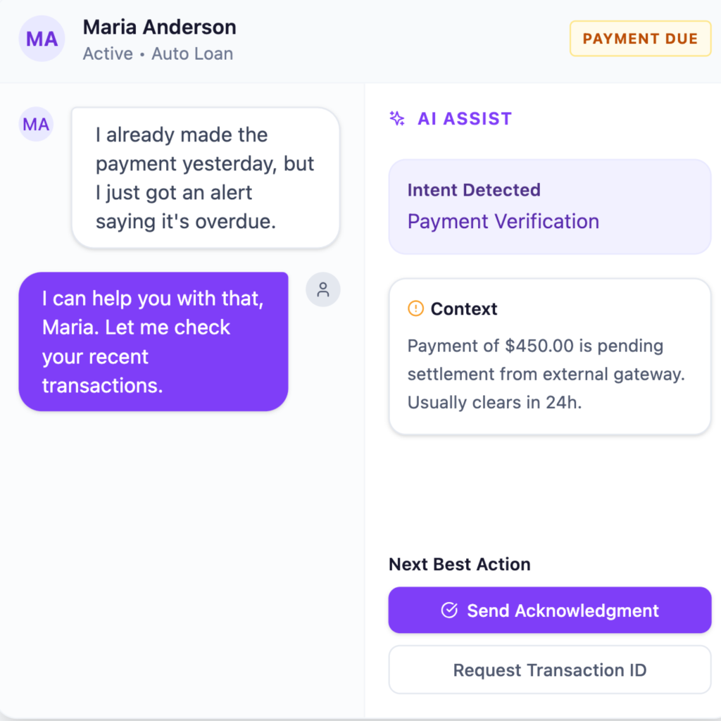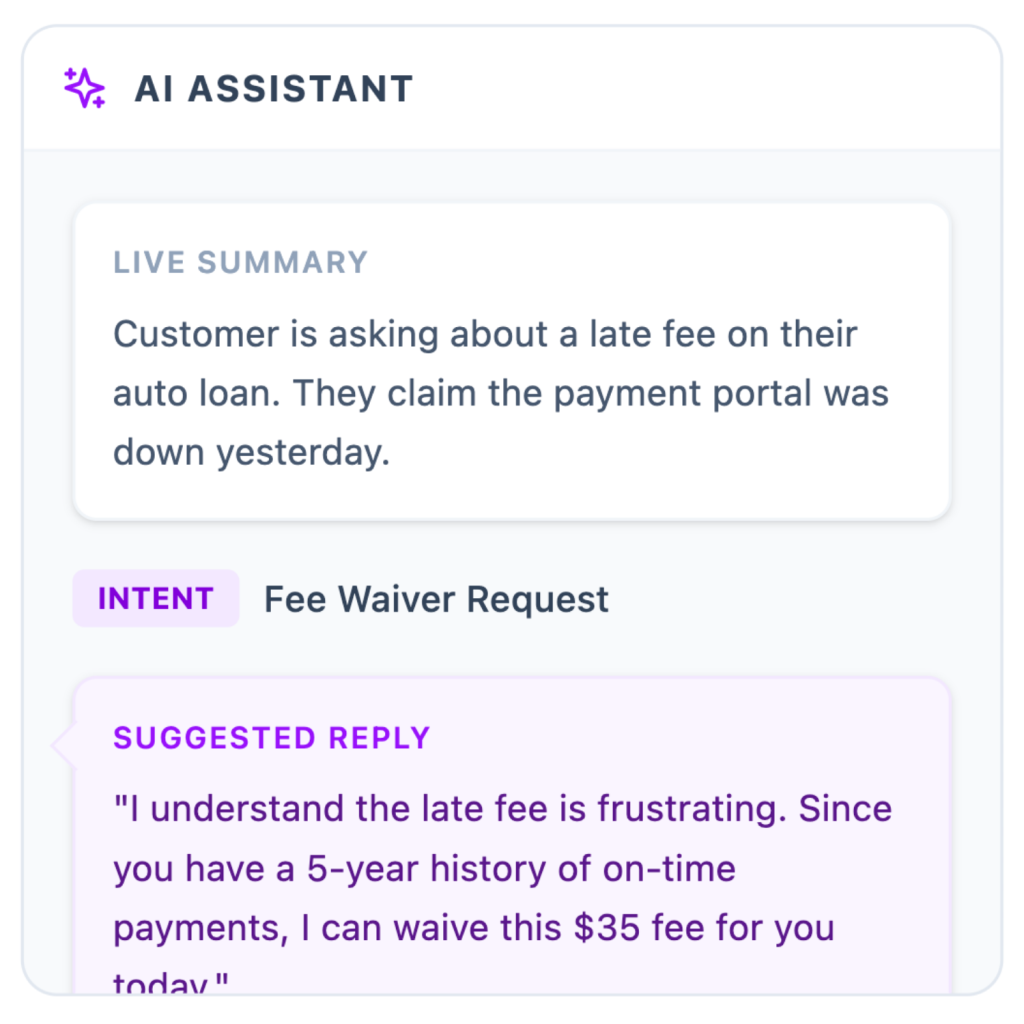 Enables financial institutions to empower customer-facing teams with AI-driven tools that enhance productivity, decision-making, and response quality.