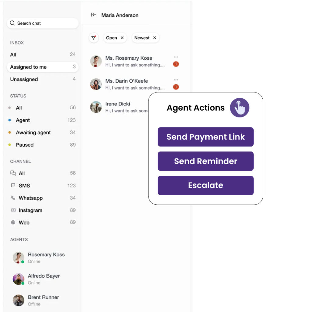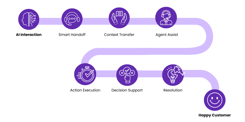 Enables agents to take real-time, context-driven actions directly within the interaction—eliminating delays and reducing dependency on multiple systems.
