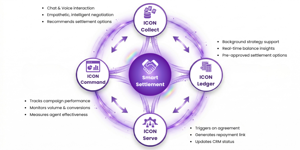 Each agent specializes in a critical stage of the settlement journey, collaborating in real time to deliver faster resolutions, seamless execution, and improved recovery outcomes.
